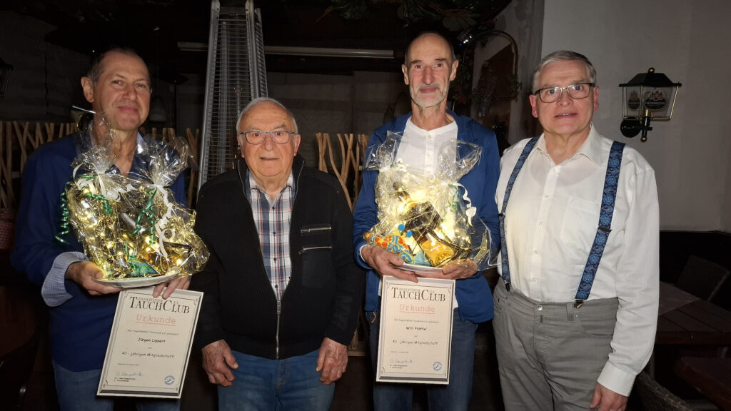 Bis nach Mitternacht haben sich rund ein Viertel der gesamten Mitgliedschaft am letzten Januarfreitag beim Pauliwirt versammelt, um gemeinsam über das letzte Jahr zu ratschen, das neue Jahr zu besprechen und einfach mal ohne Zwang einen geselligen Abend zu verbringen. Bemerkenswert an unserer Feier heuer: Die Altersspanne, denn die reichte von 5 bis 87 Jahren und spiegelte eindrucksvoll die lebendige und generationenübergreifende Gemeinschaft des Vereins wider. Unser ältester Gast an diesem Abend ist nicht nur ein Ehren- sondern gleichzeitig auch ein Gründungsmitglied des Ingolstädter Tauchclubs.